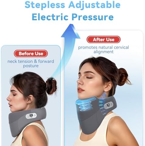 𝗔𝘂𝘁𝗼-𝗔𝗱𝗮𝗽𝘁𝗶𝘃𝗲 𝗔𝗶𝗿 𝗣𝗿𝗲𝘀𝘀𝘂𝗿𝗲 – This neck stretcher brace features electric, auto-adaptive air pressure technology that performs a gentle cervical stretch for 15 minutes. The mild vertical decompression helps promote natural cervical alignment, relieving everyday strain and supporting healthy posture