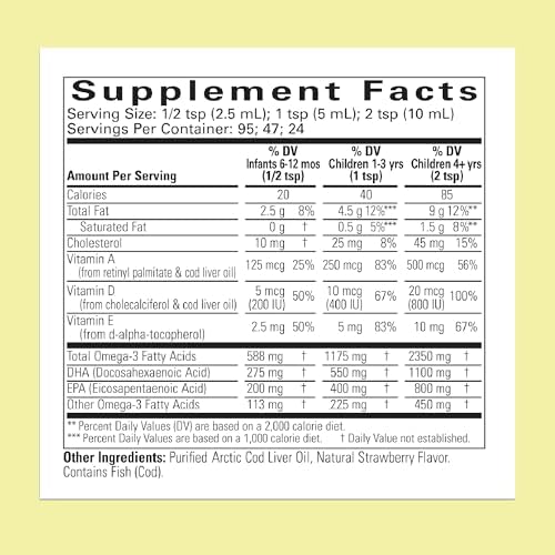 Recommended Daily Use – Take our Pure Arctic Cod Liver Oil for brain health support. For infants 6+ months, give 1/2 tsp daily. For toddlers 1-3, 1 tsp daily. For children 3+, 1-2 tsp daily