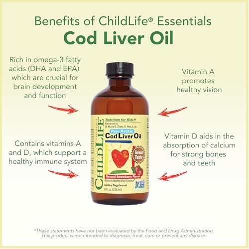 Home Child health Brain and growth support CHILDLIFE Essentials Cod Liver Oil for Kids – Liquid Arctic Cod Liver Oil for Babies 6+ Months, Toddlers, & Kids, Added DHA, EPA, Omega-3 Fatty Acids – Strawberry, 8 fl oz