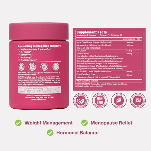 Comprehensive support: ACV 500 mg, Ashwagandha 300 mg, Thermogenic Probiotics for women 20 B. CFU, Black Cohosh 40 mg, Chaste Tree berry 40 mg