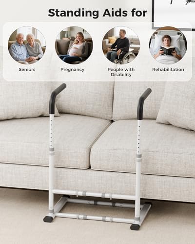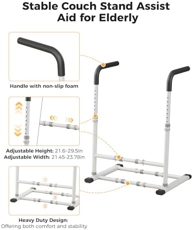 Fully Adjustable for Comfort: Customize to your needs with adjustable height (21.6″–29.5″) and adjustable width (21.45″-23.78″). Couch rails for elderly adults safety are suitable for both low and high seats, ideal as a stand assist for elderly, disabled, pregnancy, or post-surgery individuals—use it at the couch, bedside, toilet, or anywhere standing support is needed. Chair assist for elderly allows users of different heights to find a comfortable and safe position when sitting down or standing up. Perfect for seniors, patients, or anyone who needs extra support at home