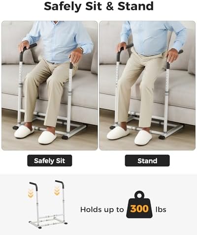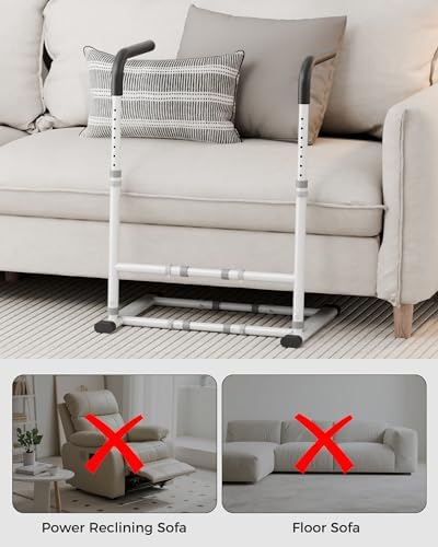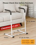 Universal Fit for Most Furniture: Stand assist aid is designed for chairs, sofas, and couches with a ground clearance over 1.4″ (3.5 cm) and seat height under 22″ (56 cm). The grab bars span 18.9″ (48 cm), offering a secure fit for users of various body sizes. Always check furniture dimensions before using standing assist devices