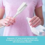 Ergonomic curved 10″ wiper tool allows for single-handed wiping, with angled end for more precise use