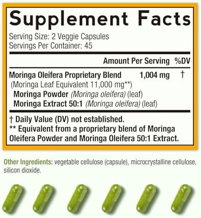 11,000 mg High Strength per Serving: Doctor’s Recipes Moringa supplement contains 800 mg of Moringa Powder and 204 mg of Moringa 50:1 Extract (equivalent to 10,200 mg of fresh moringa oleifera leaves) per serving. It is made from moringa leaves naturally grown, ethically and sustainably sourced from the lush foothills of India. The leaves are freeze dried to preserve their rich nutrition in maximum and we use a clean extraction method to ensure the utmost purity, quality, and potency.