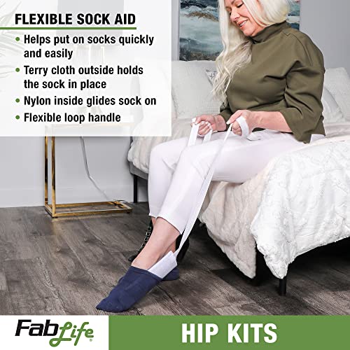FabLife Hip Kit Daily Living Aids for Mobility, Hip Replacement Recovery, Knee and Back Surgery Includes Grabber Reacher, Bath Sponge Stick, Flexible Sock Aid, Shoehorn