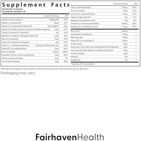 Scientifically Studied Comprehensive Female Fertility Formula. This patented formula offers a 3-in-1 approach to women’s reproductive health by combining a comprehensive preconception multivitamin, specialty nutrients for female fertility including myo- and D-chiro inositol, and added antioxidants to support egg health including CoQ10, melatonin, beta-carotene, resveratrol, and NAC.*