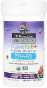 Home Child health Garden of Life Dr. Formulated Probiotics Organic Kids+ plus Vitamin C & D – Berry Cherry – Gluten, Dairy & Soy Free Immune & Digestive Health Supplement, No Added Sugar, 30 Chewables (Shelf Stable)