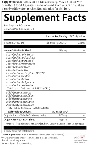 CRANBERRY, PREBIOTICS AND VITAMIN D: This prebiotic supplement has 439mg Organic Potato and Organic Acacia prebiotic fiber to help feed good bacteria in the gut, 500mg Organic Pacran Whole Cranberry Fruit plus 1,000 IU Vitamin D3 for UT and immune health