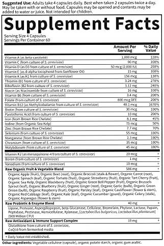 MULTIVITAMIN WITH PROBIOTICS AND WHOLE FOODS: 23 powdered organically grown raw fruits and vegetables add supporting antioxidants, vitamins & nutrient cofactors; Our women’s vitamins support breast, heart & reproductive system health as well as energy*