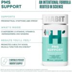 “Get in sync with your cycle and get off the PMS rollercoaster. HABIT’s PMS Support supplement marries science-backed nutrients with time-tested adaptogens to support hormonal balance and a smoother cycle, all month long*. This formulation contains Thiamin, Riboflavin, Niacin, Vitamin B6, Pantothenic Acid, Vitamin D and Vitamin B12 unite with time-tested adaptogens, Chaste Tree, Ashwagandha, Asian Ginseng and Black Cohosh. These non-GMO capsules are free from gluten and synthetic colors and flavors. *These statements have not been evaluated by the Food and Drug Administration. This product is not intended to diagnose, treat, cure or prevent any disease.”