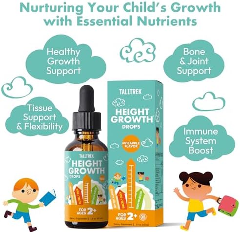 TallTrek Height Growth Drops provide support during your child’s growth stages, including those related to height. The carefully selected blend of natural herbs, including Ashwagandha Root Extract, Spirulina Powder, Astragalus Root Extract, Poria Mycelium Powder, Eucommia Bark Extract, Polygonatum Root Powder, and Ginkgo Biloba Leaf Extract, contributes to overall well-being and vitality.