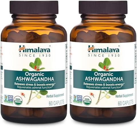 Home Natural and Herbal wellness Ashwagandha Himalaya Organic Ashwagandha Root, 120 Day Supply – Herbal Adrenal Support Supplements for Stress Relief and Energy Support – USDA Organic, Non-GMO, Vegan, Gluten Free, 60 Caplets, 2 Pack