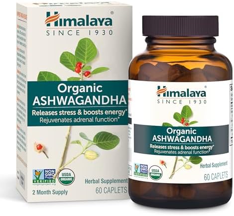 Himalaya Organic Ashwagandha Root, 60 Day Supply – Herbal Adrenal Support Supplements for Stress Relief and Energy Support – USDA Organic, Non-GMO, Vegan, Gluten Free, No Additives, 670 mg, 60 Caplets