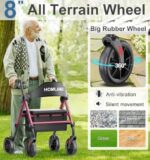 【Smooth All-Terrain Mobility】Stable 8-inch premium rubber wheels, this rollator walker effortlessly glides over various terrains, making it easy to walk indoors and outdoors