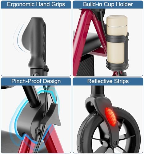【More Added Features】Equipped with a removable CUP HOLDER, and large STORAGR POUCH, this rollator offers convenient storage for personal belongings or transportable items; Its intuitive push-up brake and push-down wheel lock ensure ease of use.Multi-Reflective Strips, enhance visibility during nighttime use