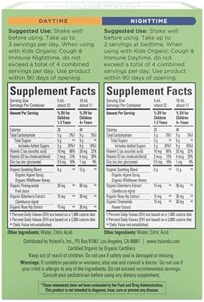 Hyland’s – Kids – Organic Cough & Immune Day & Night Combo Pack – Eases Coughs, Supports Immunity, Promotes Sleep, Two 4 Fl Oz. Bottles (8 fl oz)