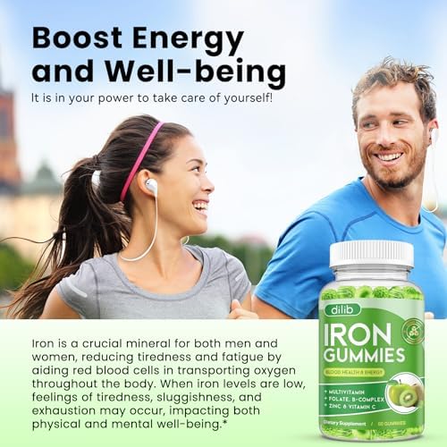 BOOST YOUR IRON LEVELS NATURALLY: Dilib iron supplement gummies combine essential vitamins and minerals to provide a delicious and easy way to support your daily iron intake. Prevent iron deficiency, promote healthy blood production, and boost energy levels without the discomfort of traditional supplements. These iron gummies effectively increase iron levels and sustain natural energy levels, eliminating fatigue and weakness to keep you energized throughout the day