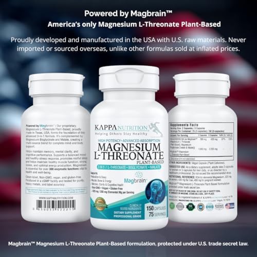 High-Potency Magnesium L-Threonate Plant-Based. Manufactured in Texas, USA. Each 3-capsule serving provides 420 mg elemental magnesium (280 mg per 2 capsules).
