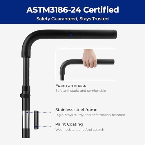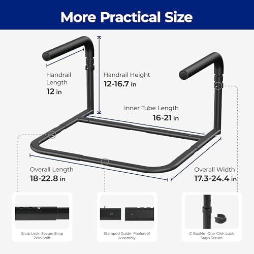 Hold 300 lbs, Grip Soft with Ease- Constructed with aircraft-grade aluminum and stainless steel, the stand assist frame safely supports up to 300 lbs (136 kg). Flat-tube base design securely hugs furniture, preventing slippage for maximum stability. Lightly padded with a soft foam, the stand assist handles provide a comfortable, yet secure grip for greater leverage and support