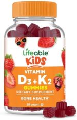 Lifeable Kids Vitamin D3 K2 Gummies | 500iu D3 and K2 100mcg | Great Tasting D3 and K2 Supplements | for Bone Health and Immunity | VIT D3 K2 for Kids | 60 Gummies