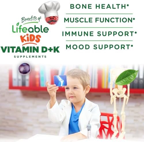 Home Child health Lifeable Kids Vitamin D3 K2 Gummies | 500iu D3 and K2 100mcg | Great Tasting D3 and K2 Supplements | for Bone Health and Immunity | VIT D3 K2 for Kids | 60 Gummies