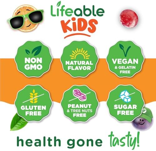 Home Child health Immune boosters Lifeable Sugar Free Elderberry Gummies for Kids with Vitamin C and Zinc | Kids Immune Support Supplement | Great Tasting Elderberry Gummies | Vegan, Non GMO, Kosher Gluten Free | 60 Gummies