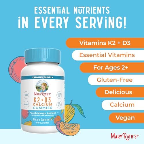 Free of Common Allergens: MaryRuth Organics K2 D3 Calcium Gummies are Non-GMO, No Gelatin, Pectin Based, Vegan, Made in a GMP (Good Manufacturing Practice) Facility. Dairy Free, Nut Free, Gluten Free, Made with Organic Cane Sugar. Kid Friendly. Clean Label Project Verified. B Corp Certified.