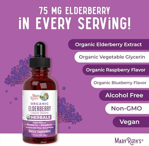 Home Child health Immune boosters MaryRuth Organics Elderberry Syrup | USDA Organic | Sugar Free Immune Support Supplement for Adults & Kids, Ages 1 | Vegan, Non-GMO, Immune Boosters, Clean Label Project Verified | 1 Fl Oz