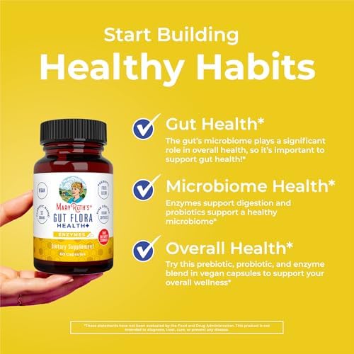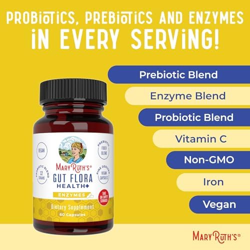 Home Probiotics MaryRuth Organics Gut Flora Health+ Enzymes | Up to 2 Month Supply | Prebiotic Probiotic Digestive Enzymes Blend for Healthy Gut Biome & Digestive Support | Gastrointestinal Health | 60 Capsules