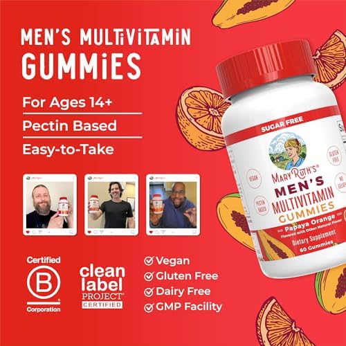 For Most Lifestyles: Multivitamin Gummies for Men by MaryRuth’s are Non-GMO, Vegan, Pectin Based, No Gelatin, Dairy Free, Gluten Free, Nut Free, Soy Free, Made in a GMP Facility. Each bottle comes with 30 servings. Clean Label Project Certified. B Corp Certified.