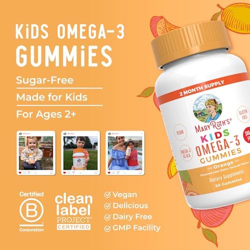 For Most Lifestyles: MaryRuth’s Kids Omega 3 Gummies are Non-GMO, No Gelatin, Pectin Based, Vegan, Made in a GMP (Good Manufacturing Practice) Facility. Dairy Free, Nut Free, Gluten Free, Soy Free, Sugar Free. Clean Label Project Certified. B Corp Certified.
