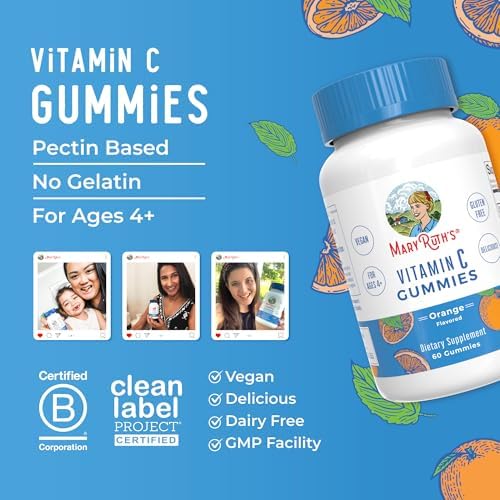 For Most Lifestyles: MaryRuth’s Vitamin C Gummies are Non-GMO, No Gelatin, Pectin Based, Vegan, Made in a GMP (Good Manufacturing Practice) Facility. Dairy Free, Nut Free, Gluten Free, Soy Free, Made with Organic Cane Sugar. Kid Friendly. Clean Label Project Verified. B Corp Certified.