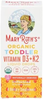 For Most Lifestyles: USDA Organic Vegan Vitamin D3+K2 (MK-7) Liquid Drops by MaryRuth’s for Toddlers is Non-GMO, Vegan, Dairy Free, Nut Free, Gluten Free, Soy Free, Sugar Free, Made in a GMP Facility, No Artificial Colors, Formulated for Toddlers, Ages 1 to 3! Clean Label Project Certified. B Corp Certified.