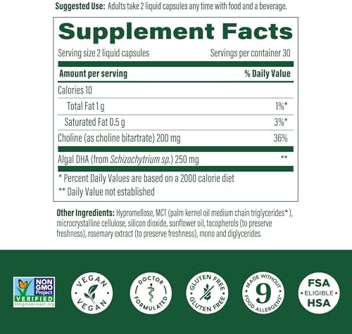 INNOVATIVE NUTRIENT DELIVERY: Liquid DHA supplements with slow-release choline beadlets in a vegetable capsule to deliver nutrients over a sustained period of time; Citrus Scent Pak in every bottle