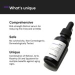 [ CLEAN & TRANSPARENT BEAUTY ]: This serum is (i) Fragrance-free (ii) Silicones-free (iii) Sulfates-free (iv) Parabens-free (v) Essential Oils-free and (vi) Dyes-free. Also, it is non-comedogenic, oil-free, and hypoallergenic. Formulated with ingredients are sourced from top quality suppliers. Retinol from BASF, Germany and Coenzyme Q10 from Selco, Germany
