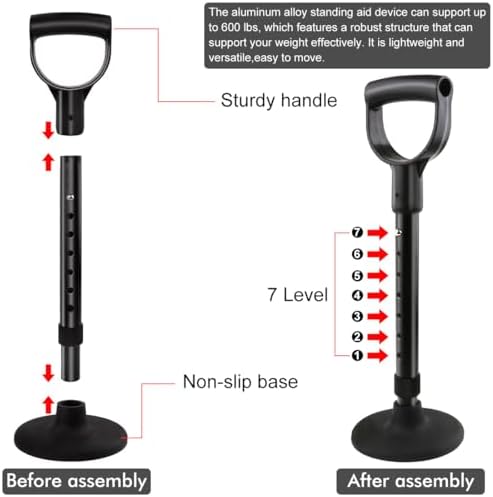 HEIGHT ADJUSTABLE: The Elderly Standing Aid can be adjusted in height as needed (no need to disassemble and install, just press and hold the adjusting button in the middle to lengthen or shorten it), suitable for use in a variety of places. Ideal standing aid for garden weeding, repairing floors, picking things up from the ground