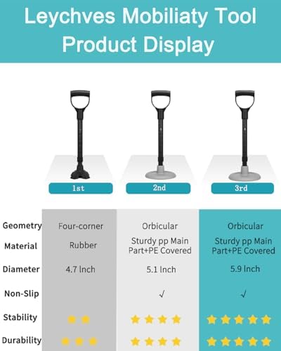 3rd Base: Standing aid base’s diameter is 6-inch, non-slip rubber base provides greater stability, helping you stand up from the floor without wobbling.