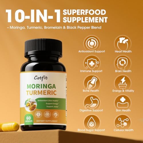 Home Natural and Herbal wellness Moringa Moringa Capsules 10-in-1 Superfood Supplement – Turmeric Curcumin, Bromelain & Black Pepper – Supports Mobility & Recovery, Energy, Digestion, Immunity & Skin Vitality – Vegan, Non-GMO, Gluten-Free