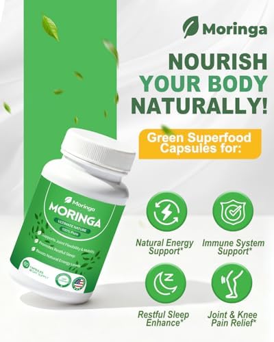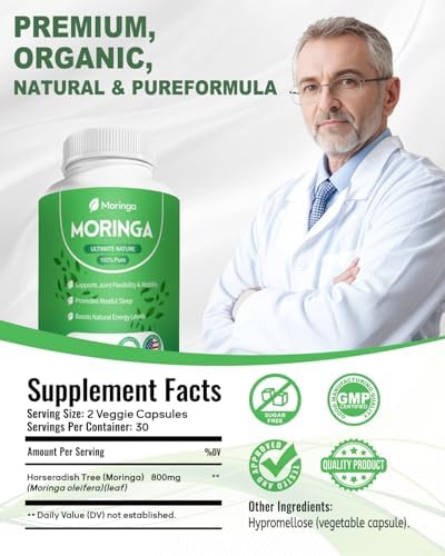 Plant-Based Nutrient Boost: Take 2 capsules a day delivers 800mg of moringa powder organic, this vegan supplement provides vitamin A, C, calcium, potassium, iron, and plant-based protein—contributing foundational nutritional elements