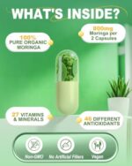 Convenient 30-Day Supply: Each bottle contains 60 vegan capsules (suggested daily serving: 2 capsules), providing a convenient, month-long supply to effortlessly integrate moringa’s nutrient-dense benefits into your daily wellness routine—no preparation needed, just take with water