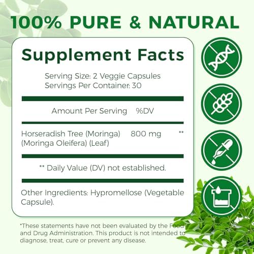 High-Potency Formula: Get the most out of your supplement. Each two-capsule serving delivers a concentrated 800mg of pure Moringa extract, a scientifically effective dose designed to provide optimal nutritional support without overburdening your body.