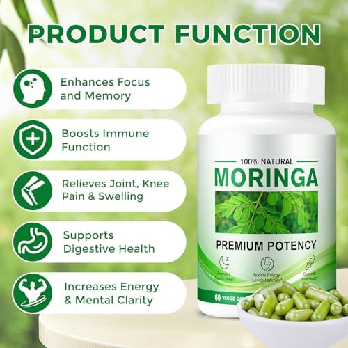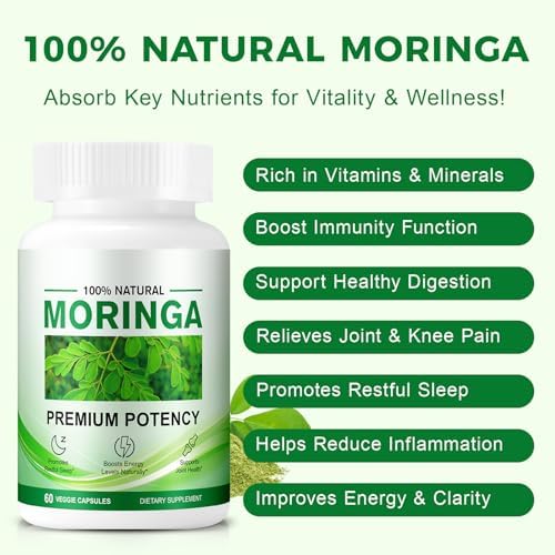 Rich in Essential Nutrients: Our Moringa capsules are packed with powerful vitamins A, C, and E, plus a variety of essential minerals. This natural antioxidant blend works to comprehensively support your immune system and promote healthy digestion for overall wellness.
