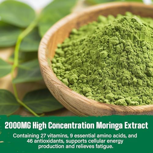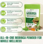 Moringa Leaf Extract: This premium organic moringa powder delivers 2,900 mg of whole herb content per serving. Concentrated from Moringa oleifera leaves at a potent 10:1 ratio equivalent to 20,000mg of raw leaf content, it maximizes the preservation of vitamins, minerals, and antioxidants to support immune function, digestive health, and joint health.
