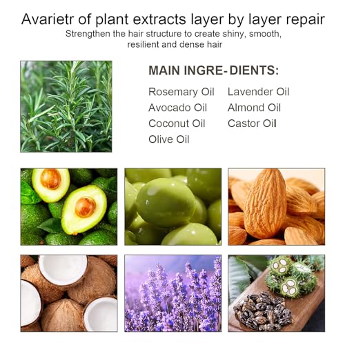[hair growth oil] – This natural hair growth oil Treatment Protects and Nourishes Hair, Reducing Further Hair Loss and Breakage.Main ingredients: Rosemary oil, oliveoil oil, lavender oil, coconut oil, almondoil oil,avocado oil,Castor oil