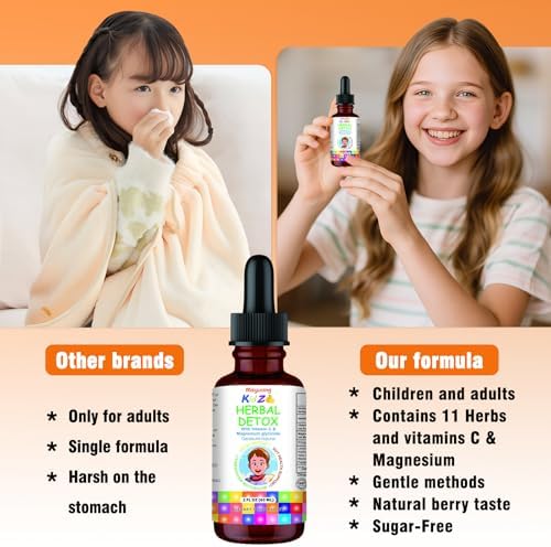 Natural Herbal Gut Support for Kids and Adults,Supports Body Cleansing, Immune Support,Improve Concentration,Vitamins C & Magnesium Glycinate,Sugar-Free (60ml, Lemon)
