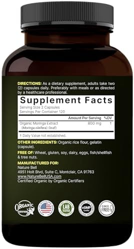 NatureBell’s moringa is extracted from fresh leaves that are harvested on Indian farms, helps retain high levels of antioxidants, minerals, essential amino acids, vitamins, natural fiber, polyphenols, and flavonoids.