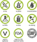 CLEAN LABEL: No preservatives, gelatin, coloring or flavoring. Proudly made at a GMP compliant facility. Vegan, Non-GMO, and Soy Free and Gluten Free.