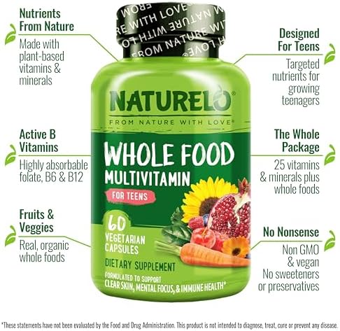 DESIGNED FOR TEENS: Naturelo teen multivitamin for boys 12-17, and multivitamin for teens 12-17 girls; supports nutritional needs of youth 12-18—healthy growth, development, immune health, energy, focus, and healthy vision, skin and hair*