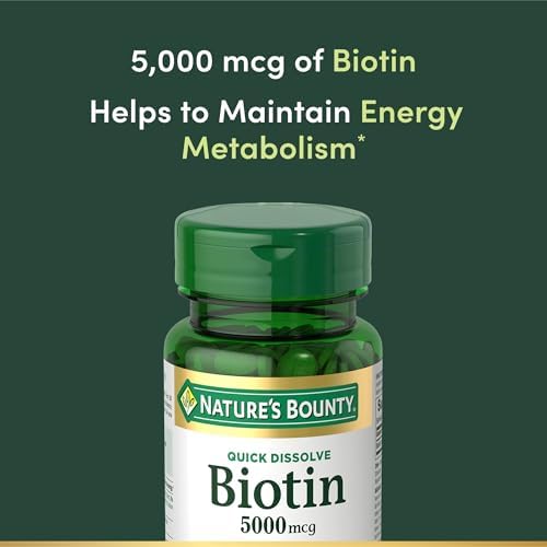 Nature’s Bounty B Vitamins support cellular energy by converting food into energy.(1) Nature’s Bounty Biotin 5000 mcg, 60 Quick Dissolve Tablets. Quick Dissolve Pill. Supports Healthy Hair, Skin, and Nails. Energy support. (1)These statements have not been evaluated by the Food and Drug Administration. This product is not intended to diagnose, treat, cure or prevent any disease.Packaging may vary due to redesign, same great product ingredients.