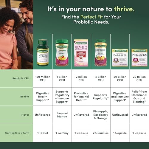 FREE FROM SEVERAL COMMON ALLERGENS: These Nature’s Bounty probiotic nutritional supplements are gluten-free; dairy-free; and wheat-free; ideal for vegetarians and anyone with dietary restrictions